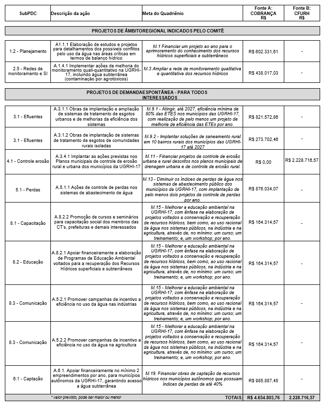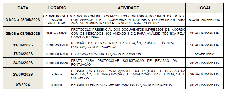 CRONOGRAMA PARA A TOMADA DE RECURSOS FEHIDRO 2026